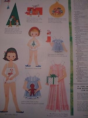 Betsy McCall Vintage 1950's Paper doll Magazine cut-out Christmas theme