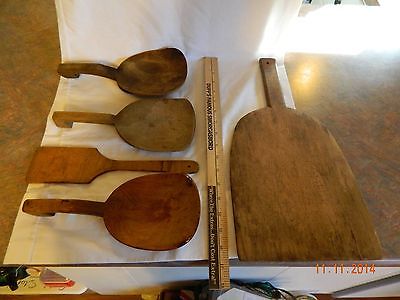 LOT OF 5 HANDMADE WOODEN BUTTER SCOOPS, DOUGH PADDLE, SPATULA