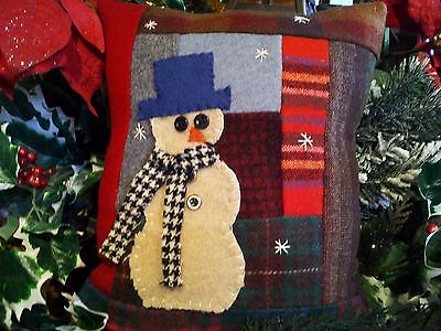 Title (ebay affiliate link): Snowman Holiday Winter Primitive Vintage wool/button Christmas Snow pillow tuck