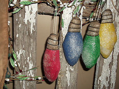 Primitive Old Fashioned Light Bulb Ornament Christmas Winter Grungy Rustic Set 4