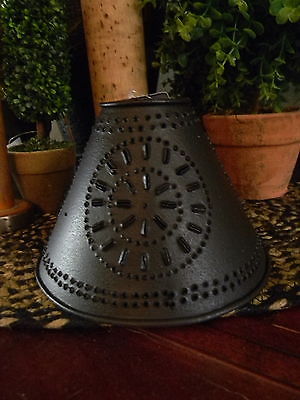 Title (ebay affiliate link): Primitive Vintage Shabby Country Small Punched Tin Dark Brown Lamp Shade