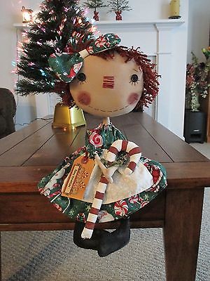 Christmas Raggedy Ann Type Doll, OOAK Folk Art Primitive, Artist Created