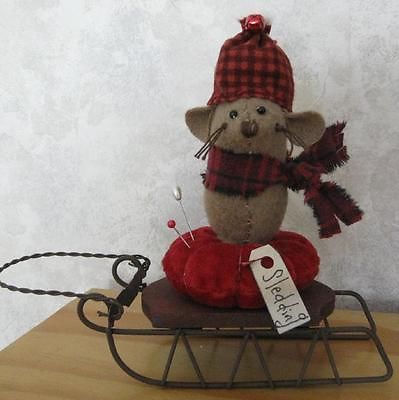 PRIMITIVE MOUSE WINTER CHRISTMAS SLED MAKE DO DOLL SHELF SITTER ORNIE PFATT
