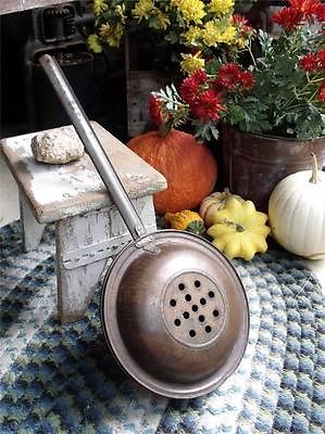 Old Vintage Rustic Primitive Tin Chestnut Roaster or Bed Warmer Slide Handle