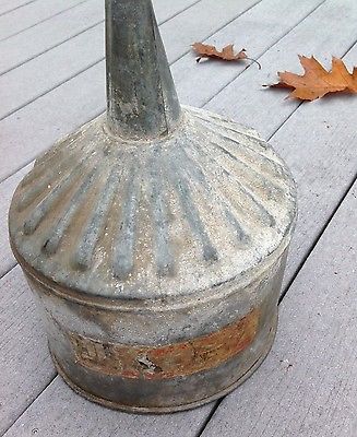 Vintage Primitive Galvanized Zinc Metal Barn Farm Fluted Funnel Lamp Salvage