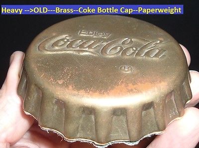 Title (ebay affiliate link): Antique Coca Cola OLD BRASS COKE POP BOTTLE CAP PAPERWEIGHT NICE!
