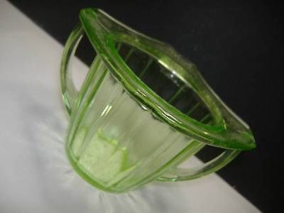 Jeanette Adam SUGAR BOWL No Lid Handles GREEN DEPRESSION GLASS Floral Vintage