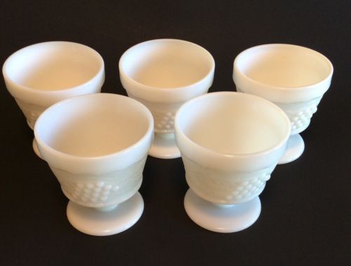 Lot of 5 Harvest Grape Milk Glass Sherbet Glasses