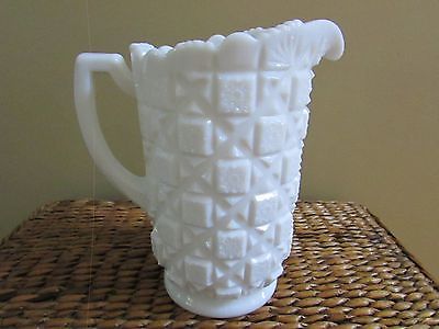 Title (ebay affiliate link): Westmoreland Heavy Tall White Milk Glass Pitcher Made in "Old Quilt" Pattern