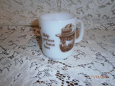 Vintage SMOKEY THE BEAR Forest Fire Prevention Advertising Milk Glass Cup Mug