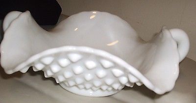 Title (ebay affiliate link): White Hobnail Milk Glass Wavy Candy Dish w Handles FREE SHIPPING