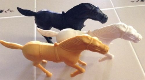 vintage lot play set marx? horses 3 in lot 4 inches tall 3 colors