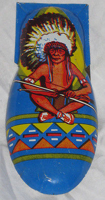 VINTAGE KIRCHOF N.J. USA INDIAN CHIEFTAIN TOY PARTY CLICKER GREAT GRAPHICS