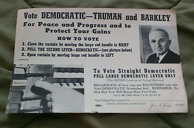Title (ebay affiliate link): HARRY TRUMAN 1948 Pesidential Campaign official democratic sample ballot