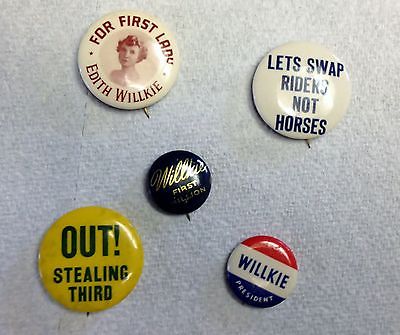 Wendell Wilkie Presidential Campaign Buttons 1940's Willkie for President Pins