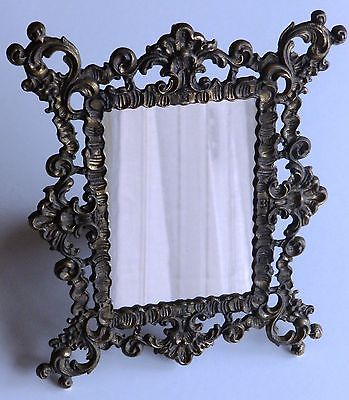 Vintage Italy Picture Frame Ornate Metal Rectangle Mirror Stand Desk Top