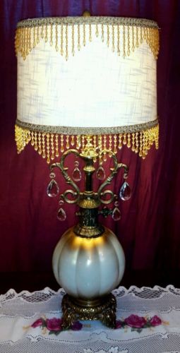 Title (ebay affiliate link): Antique Accurate Casting Iridescent Gold & White Table Lamp With Crystal Prisms