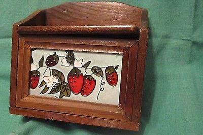 Title (ebay affiliate link): Wooden Recipe/Card File/ Coupon Holder w/ Strawberries in A StainGlass Look VTG