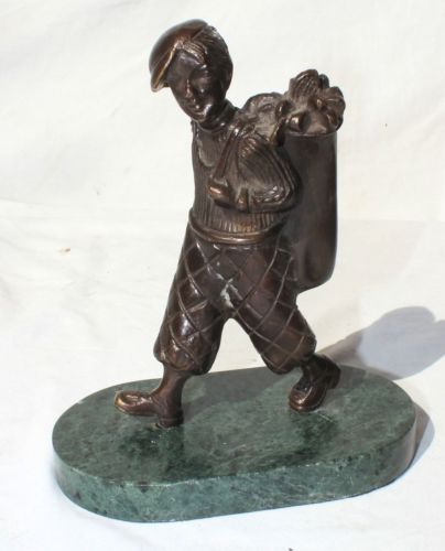 Title (ebay affiliate link): Solid Bronze Golfer Golf Boy Caddy Figurine Statue Sculpture on Green Marble 8x6