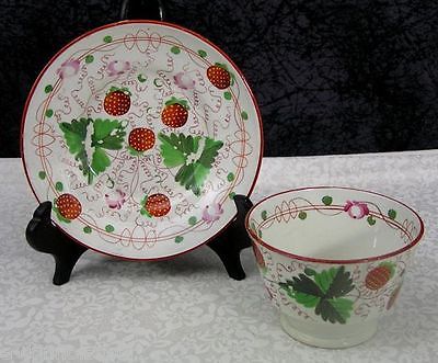 Antique Staffordshire English Pearlware Strawberry Cup & Saucer #2