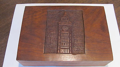 Vintage Hardwood Tea Caddy/Box with Carved Big Ben Clock Tower