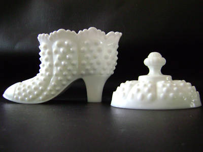 Rare Vintage FENTON Hobnail Milk Glass Candy Dish Shoe