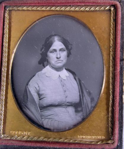 Title (ebay affiliate link): Antique Sixth Plate Daguerreotype Woman With Sad Face Marked Cooley Springfield