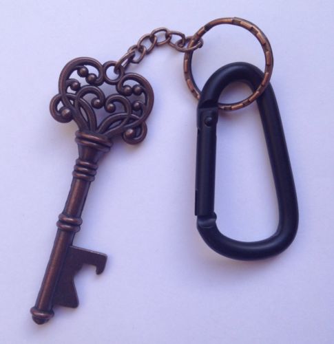 New Copper Antique Skeleton Key Bottle Opener Black Carabiner Keychain Clip