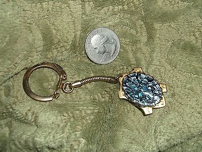 VINTAGE ANTIQUE ABALONE PRONG SET NATIVE TRIBAL TURTLE KEYCHAIN GOLD TONE