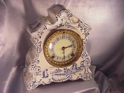 ANTIQUE ANSONIA DELFT WINDMILL CERAMIC MANTEL CLOCK PAT.1882 - LOW USA SHIPPING