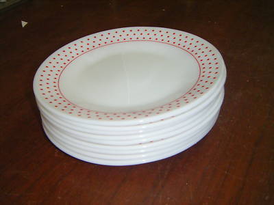 9 English Pyrex White Milk Glass Red Polka-Dot Plates