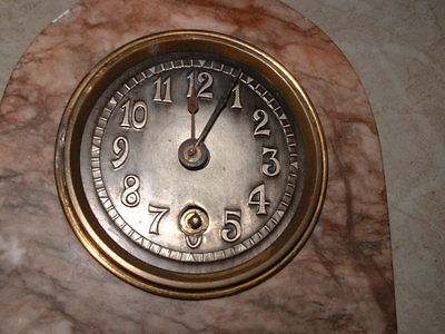 ANTIQUE PINK MARBLE MANTLE CLOCK WITH JUGHANS MOVEMENT & ARTS & CRAFTS FACE/DIAL