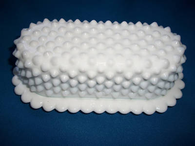 FENTON HOBNAIL MILK GLASS BUTTER DISH WITH COVER