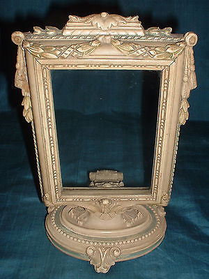 Antique WOOD Barbola CLOCK CASE Picture FRAME Pedestal Footed Ornate Swag Tassel
