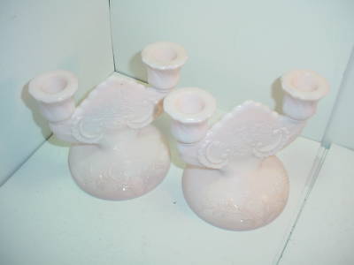 VTG JEANNETTE PINK MILK GLASS CANDLE HOLDER SET OF 2 NR