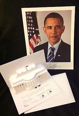 PHOTO PRES OBAMA + WHITE HOUSE ARTIST SIGNED HOLIDAY CHRISTMAS CARD 2013 +
