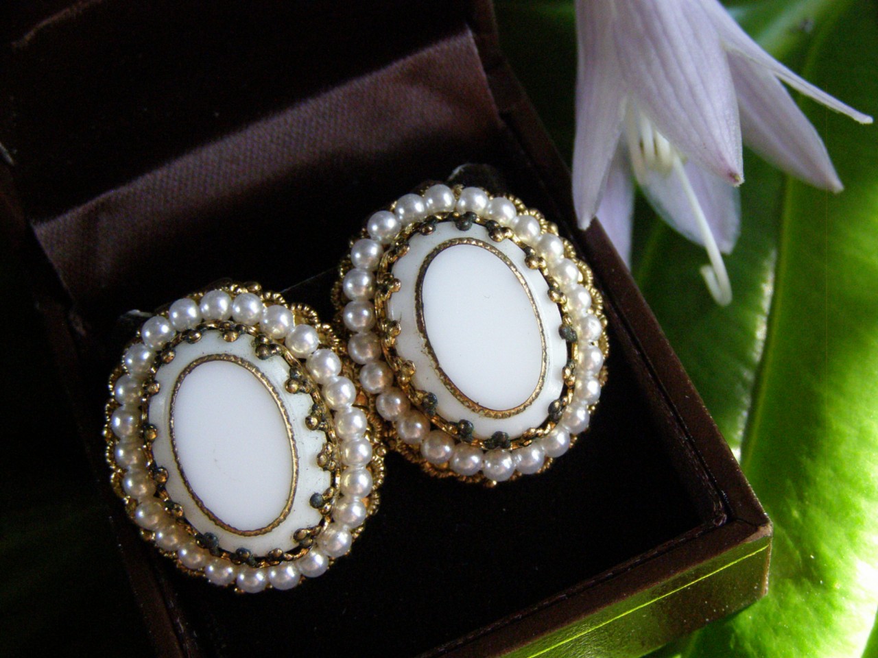 Vintage Estate MILK GLASS C/O Earrings~ Western Germany