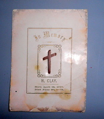 Title (ebay affiliate link): Antique Eulogy Funeral Memorial Hand out Card In Memory of Henry Clay $9.99 N/R.