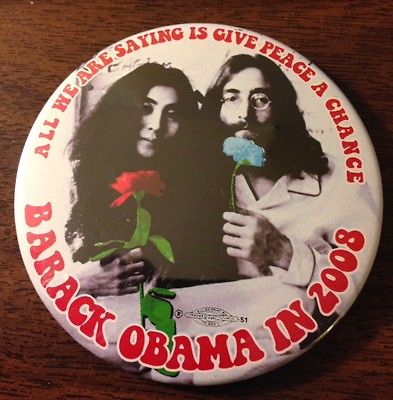 Title (ebay affiliate link): Yoko Ono/John Lennon Barack Obama in 2008 Pinback Button