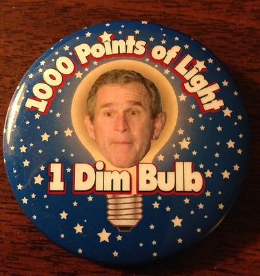 Title (ebay affiliate link): Anti-GW Bush 1000 Points of Light, 1 Dim Bulb Pinback Button