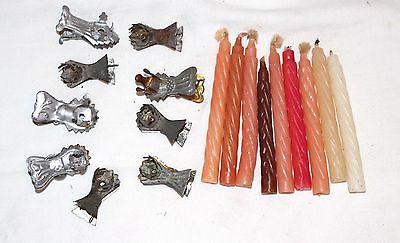 Nine Early 1900s Clip-on Tin Candle Holders. Plus Nine Candles for holders.