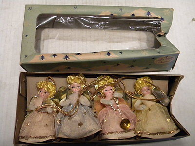 4 Vintage Shiny Brite Winged Angel Christmas Ornaments MIB