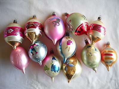 12 vintage Christmas tree ornaments glass oblong with peaks