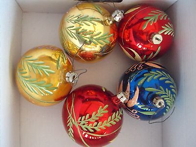 5 Handpainted Antique Vtg Christmas Ornaments Mercury Glass Victorian Bulbs