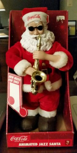 Title (ebay affiliate link): ORIGINAL NIB 2005 COCA-COLA ANIMATED JAZZ SANTA PLAYS A COKE AND JAZZ MEDLEY!!