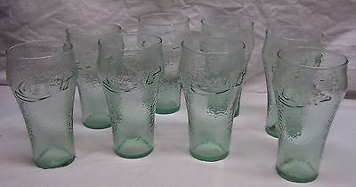 8 VINTAGE GREEN PEBBLE TEXTURE GLASS ORIGINAL COCA-COLA GLASSES