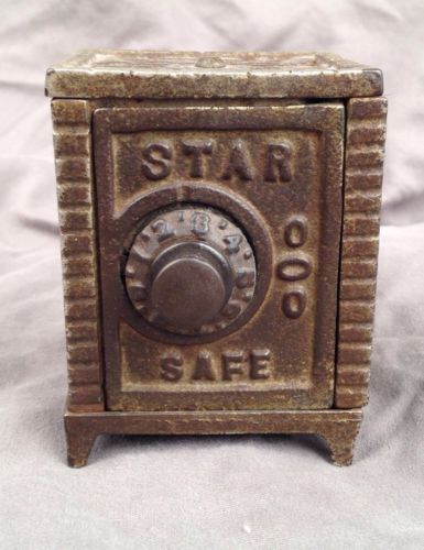 Title (ebay affiliate link): SMALL STAR SAFE ANTIQUE CAST IRON COMBINATION BANK OLD COLLECTORS