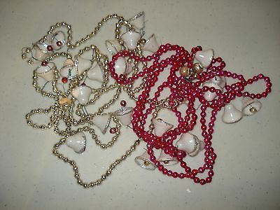 VINTAGE MERCURY GLASS CHRISTMAS GARLAND STRAND BEADS BELLS PINK & SILVER BELLS