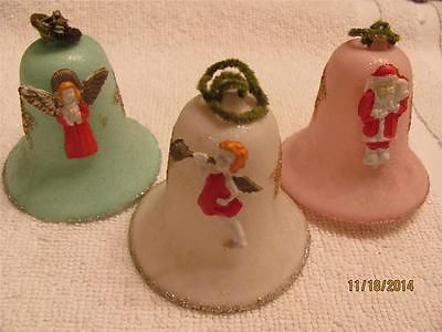 VINTAGE FROSTED JAPAN BELLS-DECORATED ANGLES-SANTA 40'S Christmas Ornaments