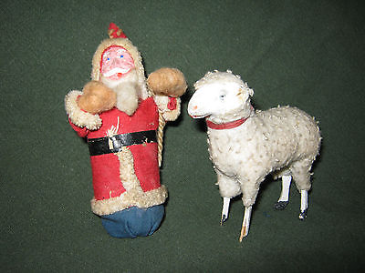 VINTAGE 1930's-40's? 4" SANTA CLAUS AND A SHEEP 3" x 3 1/2" Tall Paper Mache?
